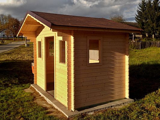 Delší čelní přesah střechy zajišťuje dobrou ochranu přední části domku, ve které bývají zpravidla umístěny dveře a okno, před deštěm. Doporučujeme volit délku přesahu střechy 70 cm, v případě objednávky terasy pak přesah 170 cm (pro terasy o hloubce 150 cm) anebo 215 cm (pro terasy o hloubce 190 cm). K přesahu 170 cm a 215 cm jsou standardně dodávány 2 ks podp. sloupků, u přesahu 215 cm je navíc dodáván 3. plný štít. Pokud jste si v předchozích krocích objednávky objednali jinou střešní krytinu, impregnaci nebo nátěr, budou se tyto položky vztahovat i na přesah střechy - cena přesahu střechy již v sobě zahrnuje tyto položky.